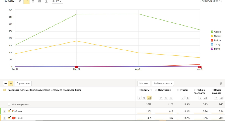 - Улучшения трафика из поисковых систем