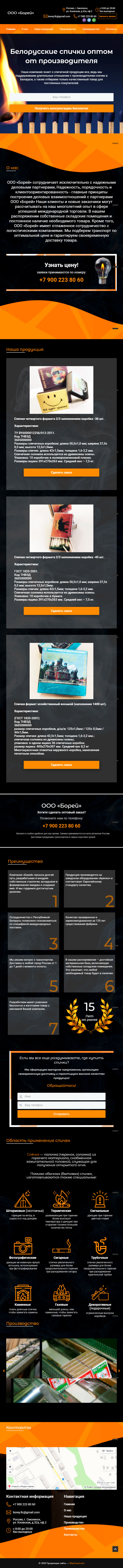 Закажите готовый продающий сайт лендинг #115 в Кирове за 1-3 дня «под ключ»: свёрстан, отрисован и готов к рекламе. Тематика шаблона «Белорусские спички оптом от производителя».