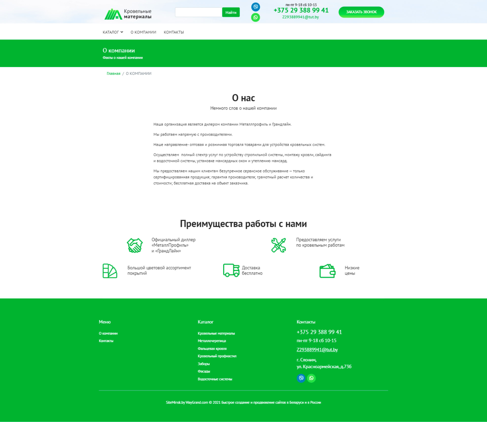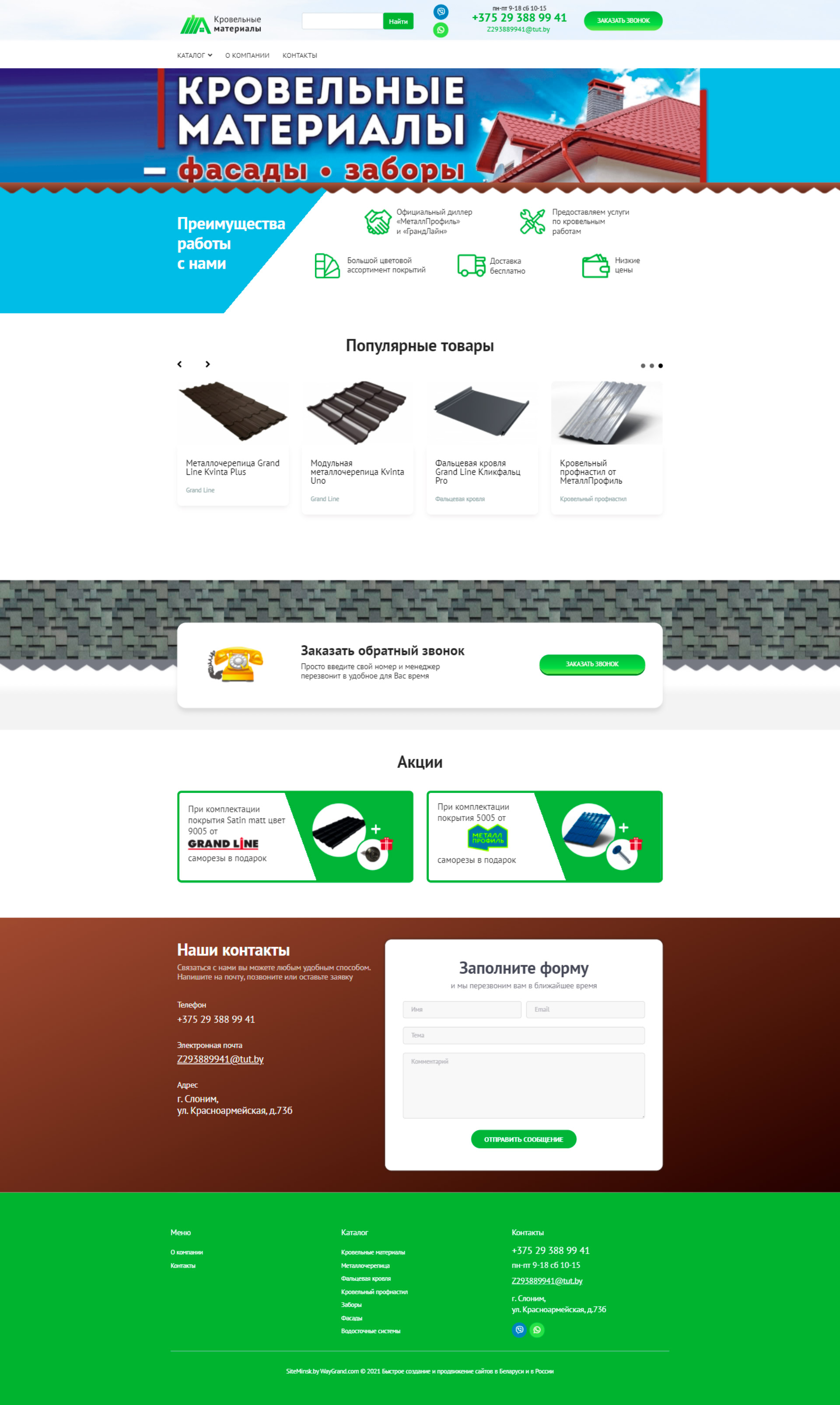 Закажите готовый продающий сайт визитка #324 в Кирове «под ключ» на waygrand по выгодной цене: свёрстан, отрисован и готов к рекламе. Тематика шаблона «Кровельные материалы».