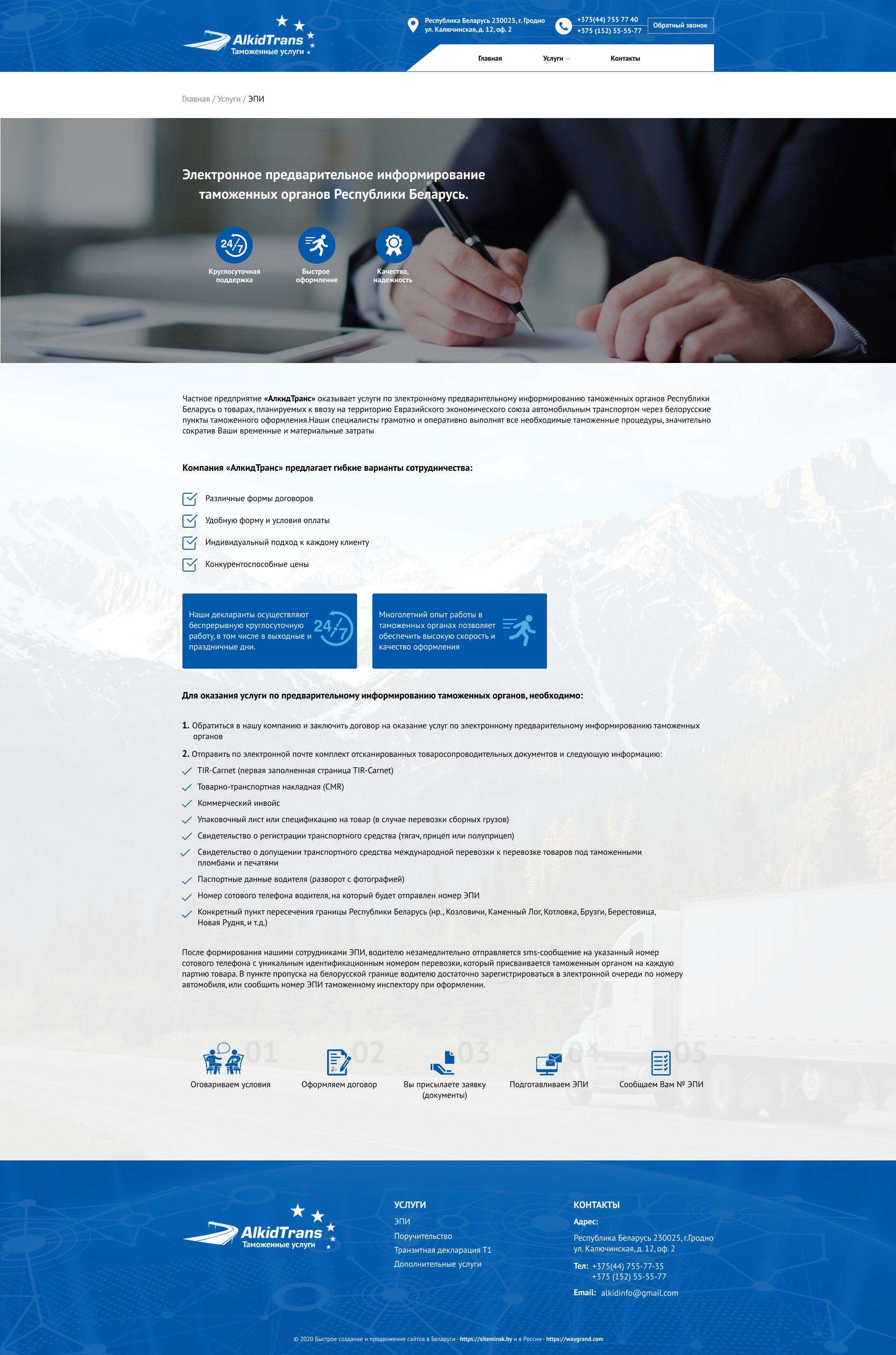 Закажите готовый продающий сайт визитка #234 в Кирове за 5-7 дня «под ключ»: свёрстан, отрисован и готов к рекламе. Тематика шаблона «Таможенные услуги».