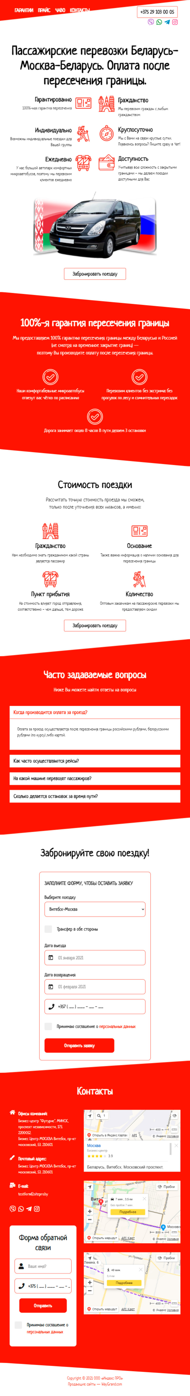 Закажите готовый продающий сайт лендинг #2528201 в Кирове за 1-3 дня «под ключ»: свёрстан, отрисован и готов к рекламе. Тематика шаблона «Пассажирские перевозки Беларусь-Москва-Беларусь».