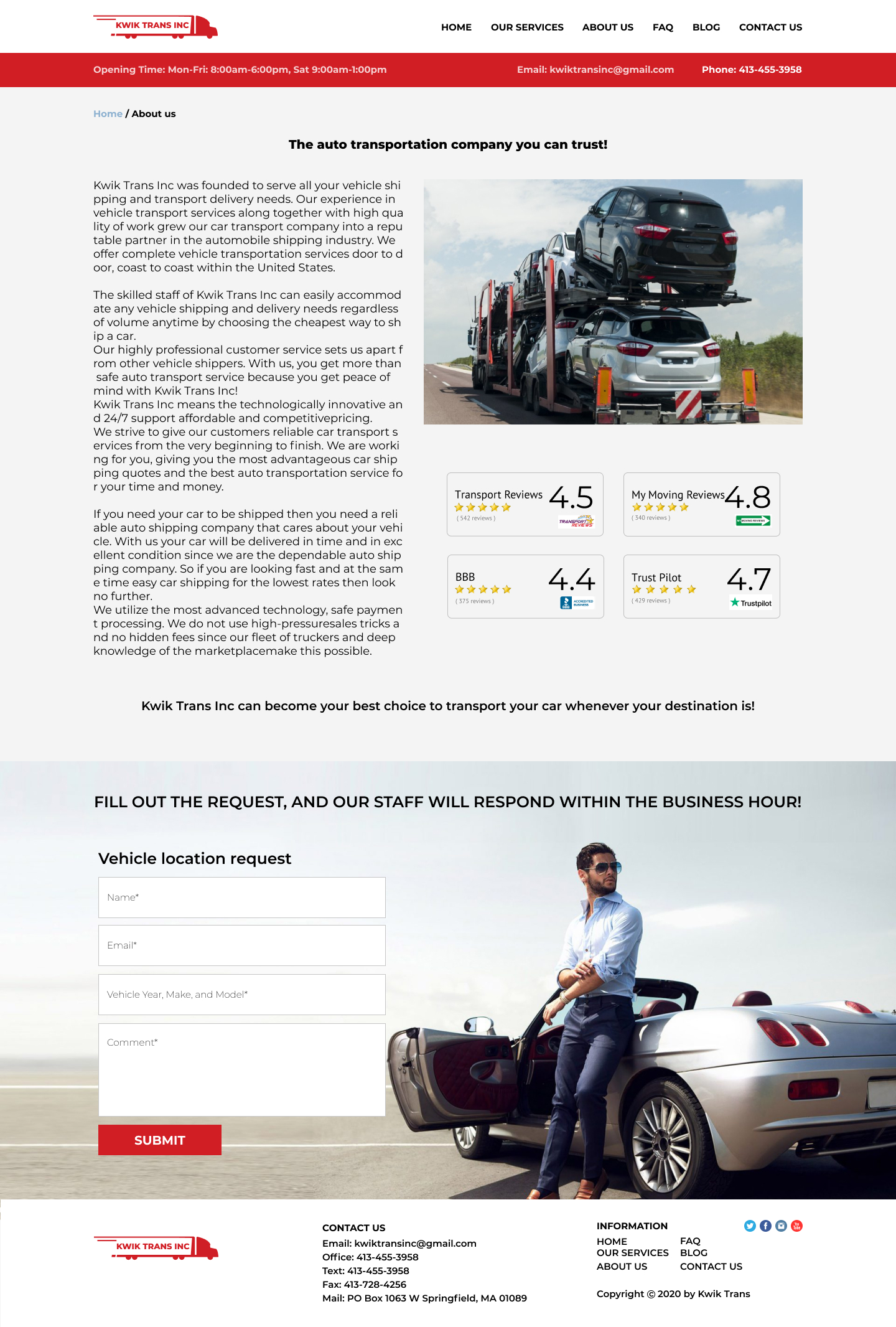 Закажите готовый продающий сайт визитка #223 в Кирове за 5-7 дня «под ключ»: свёрстан, отрисован и готов к рекламе. Тематика шаблона «Safe & Reliable National Auto Transport».